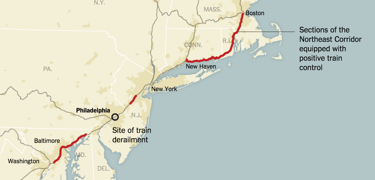 Where the safety system that could have prevented the Amtrak accident has been installed.